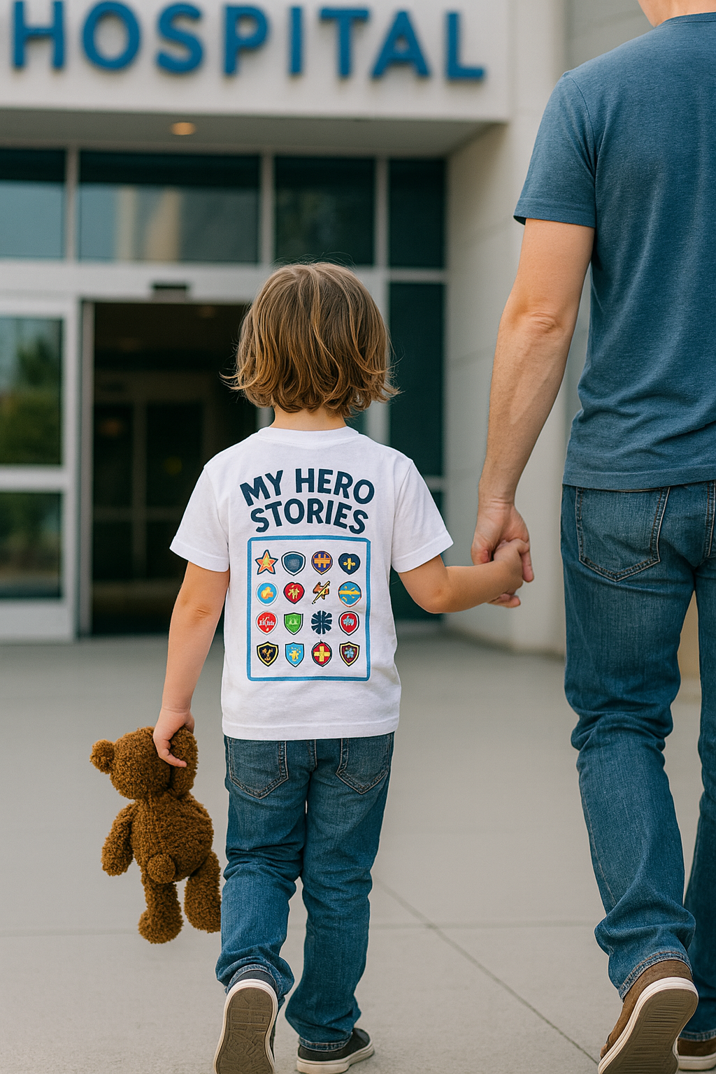 Het Mini Hero T-shirt combineert zachte stoffen met handige ritsjes zodat zorgmomenten sneller en comfortabeler verlopen, met een embleempje dat elke behandeling verandert in een moment van trots.